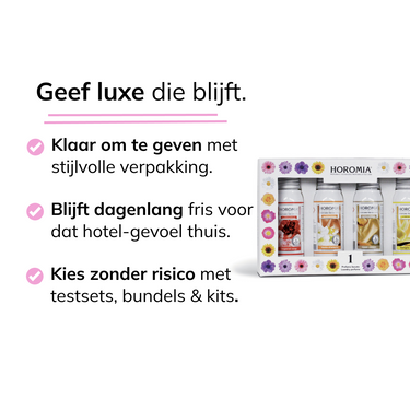 Zeker! De Horomia giftsets zijn perfect voor verjaardagen, bedankjes, housewarmings of gewoon als verwenmoment. Door de luxe uitstraling en hoogwaardige geurbeleving maak je altijd indruk.