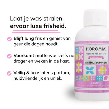 Horomia is dé favoriete wasparfum uit Italië. Dankzij zorgvuldig geselecteerde geurcomposities ruikt je was niet alleen uitzonderlijk fris, maar blijft de geur ook dagenlang hangen in je kleding én je huis. Eén keer proberen, en je wilt nooit meer zonder.