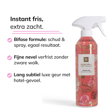 Horomia is dé favoriete roomspray uit Italië. Dankzij verfijnde geurcomposities ruikt je interieur niet alleen heerlijk fris, maar blijft de geur ook langdurig in elke kamer hangen. Eén keer sprayen, en je wilt nooit meer zonder.