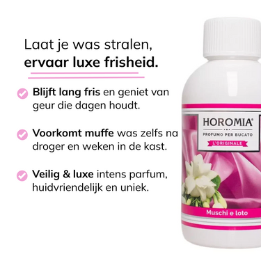 Horomia wasparfum biedt een langdurige, intense geur die je met gewone wasverzachter niet kunt bereiken.