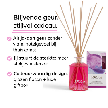 Horomia is dé favoriete keuze in geurstokjes uit Italië. Dankzij verfijnde geurcomposities vult je huis zich met een heerlijke geur die dagenlang blijft hangen. Eén keer gebruiken, en je wilt nooit meer zonder.