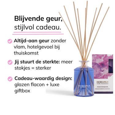 Horomia is dé favoriete keuze in geurstokjes uit Italië. Dankzij verfijnde geurcomposities vult je huis zich met een heerlijke geur die dagenlang blijft hangen. Eén keer gebruiken, en je wilt nooit meer zonder.